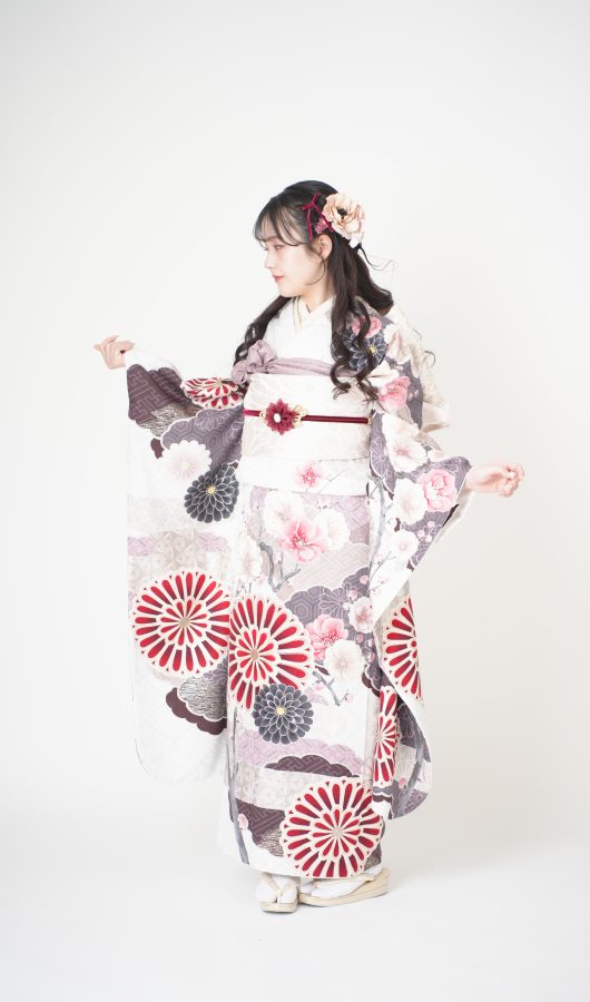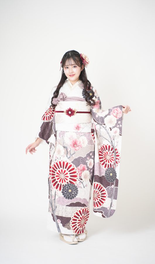 白地に華やかなピンクや赤のモダンデザインがかわいい♡