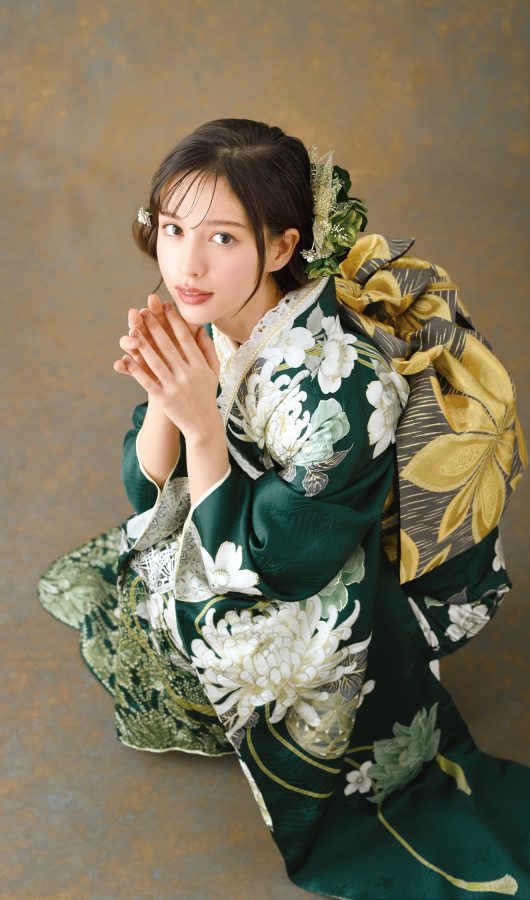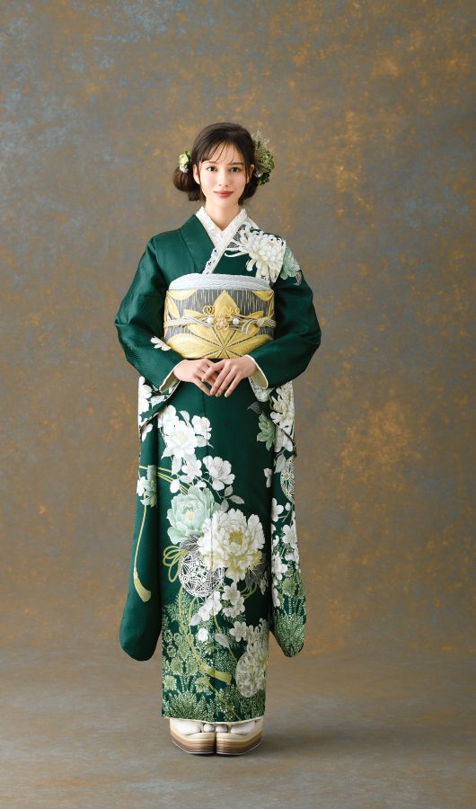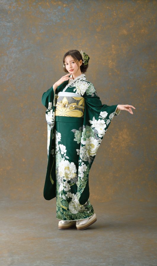 深緑が落ち着いた印象のお振袖♪