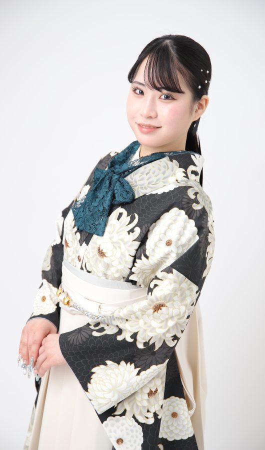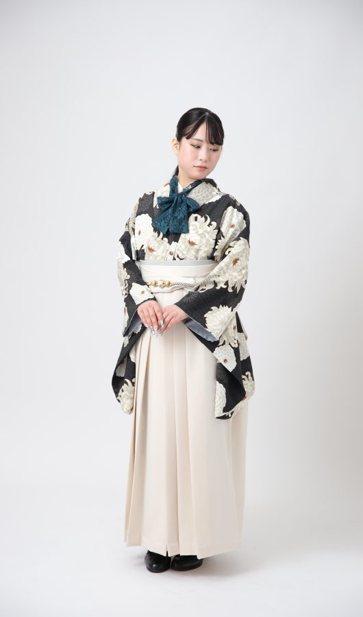 黒地に白のお花が美しくクールなお着物